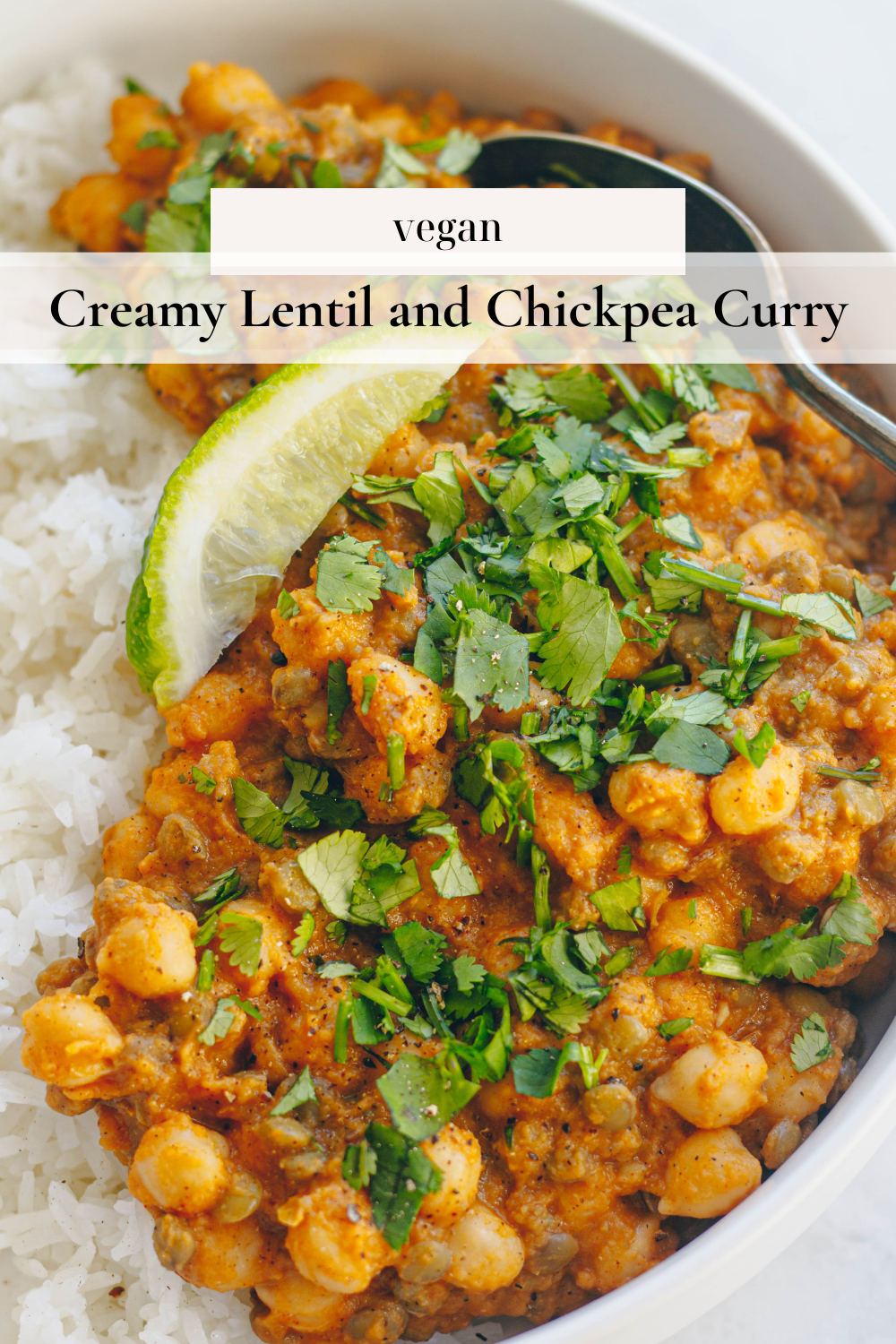 A delicious vegan curry packed with lentils and chickpeas, flavorful spices, and creamy coconut milk.