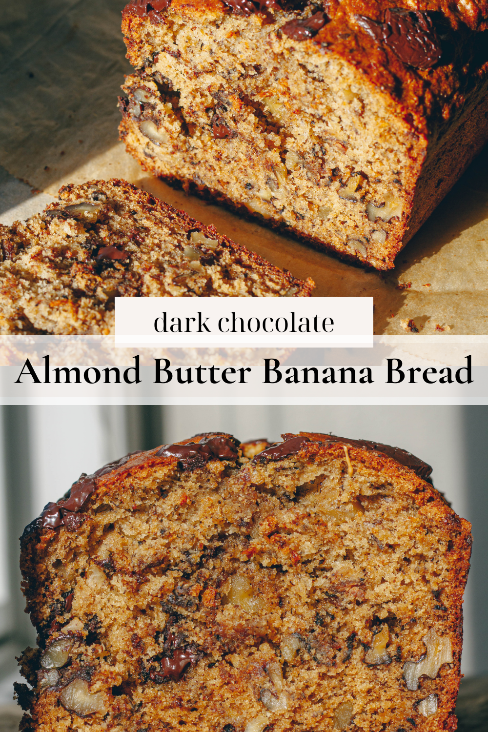 Dark Chocolate Almond Butter Banana Bread