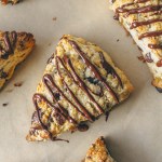 Bake for 18 min. or until tops are golden brown. Transfer scones to a wire cooling rack. While scones, are cooling, melt remaining ⅓ cup chocolate. Top scones with drizzle of chocolate. Let set before serving and enjoy!