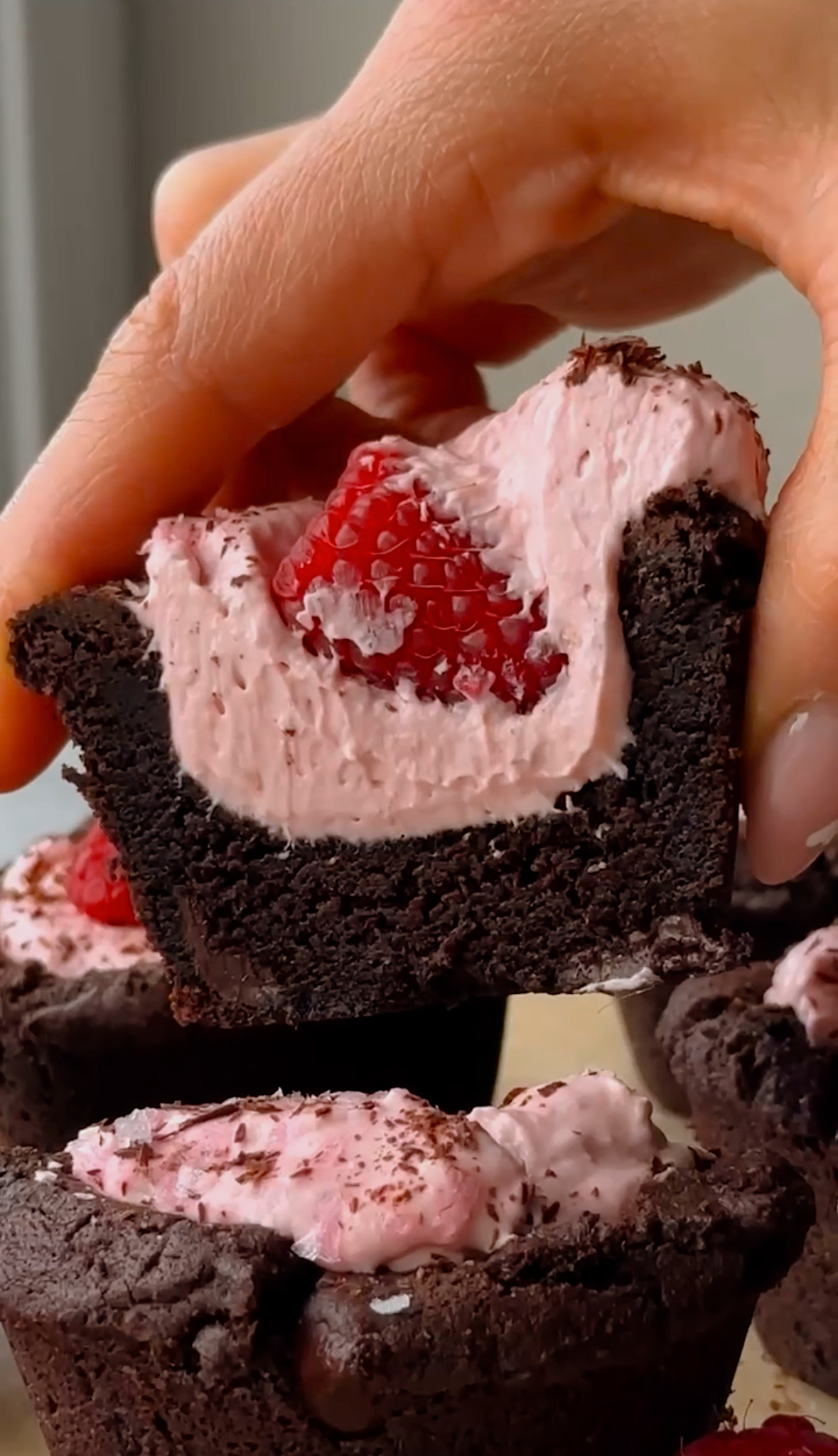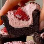 Chewy and soft dark chocolate cookie cups filled with a creamy raspberry cream cheese filling.