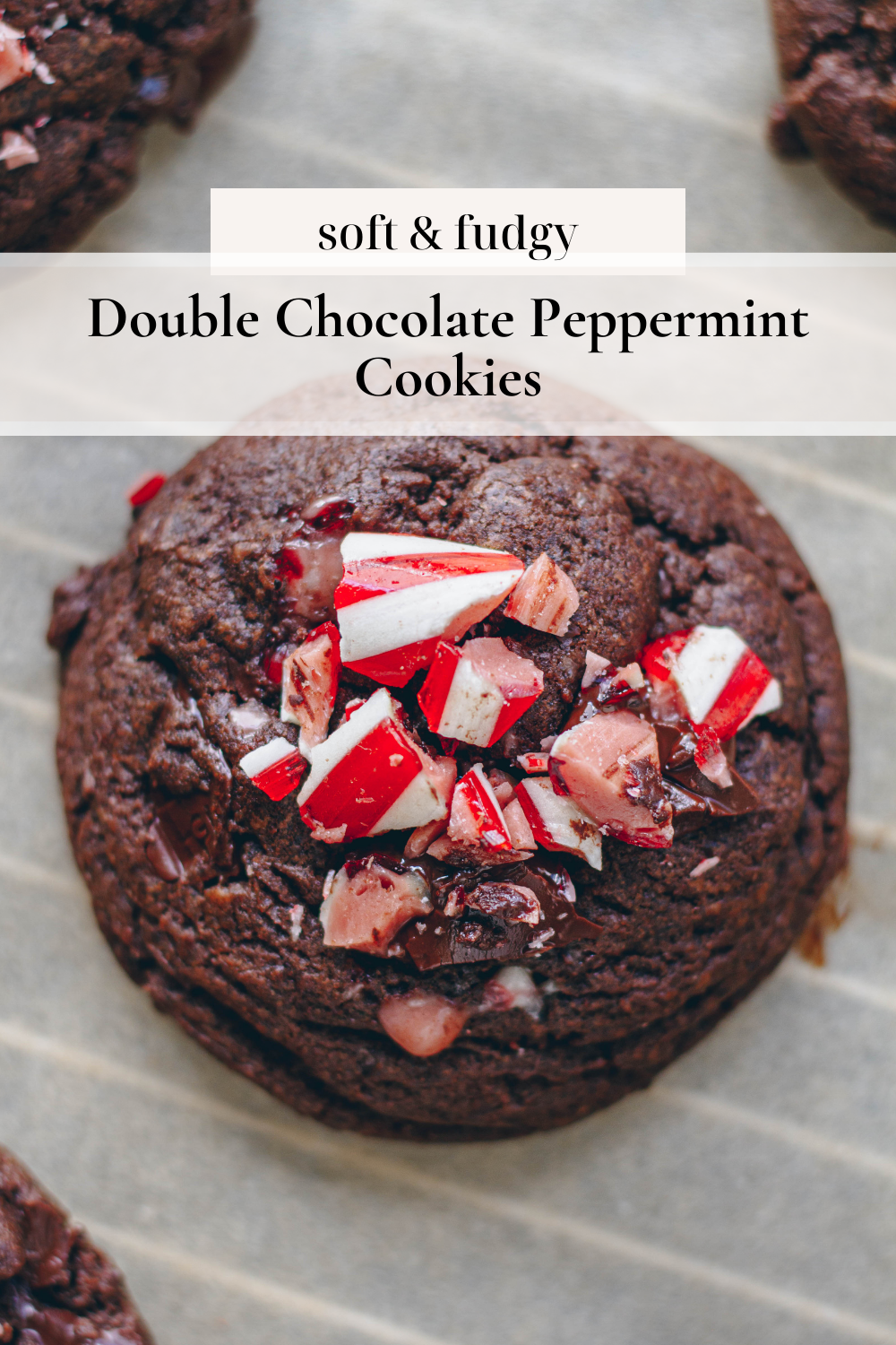 Soft, chewy, and gooey vegan double chocolate peppermint cookies.