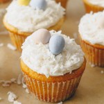 These Easter Coconut Cupcakes are perfectly light and fluffy, flavored with coconut, and topped with a creamy cream cheese frosting.
