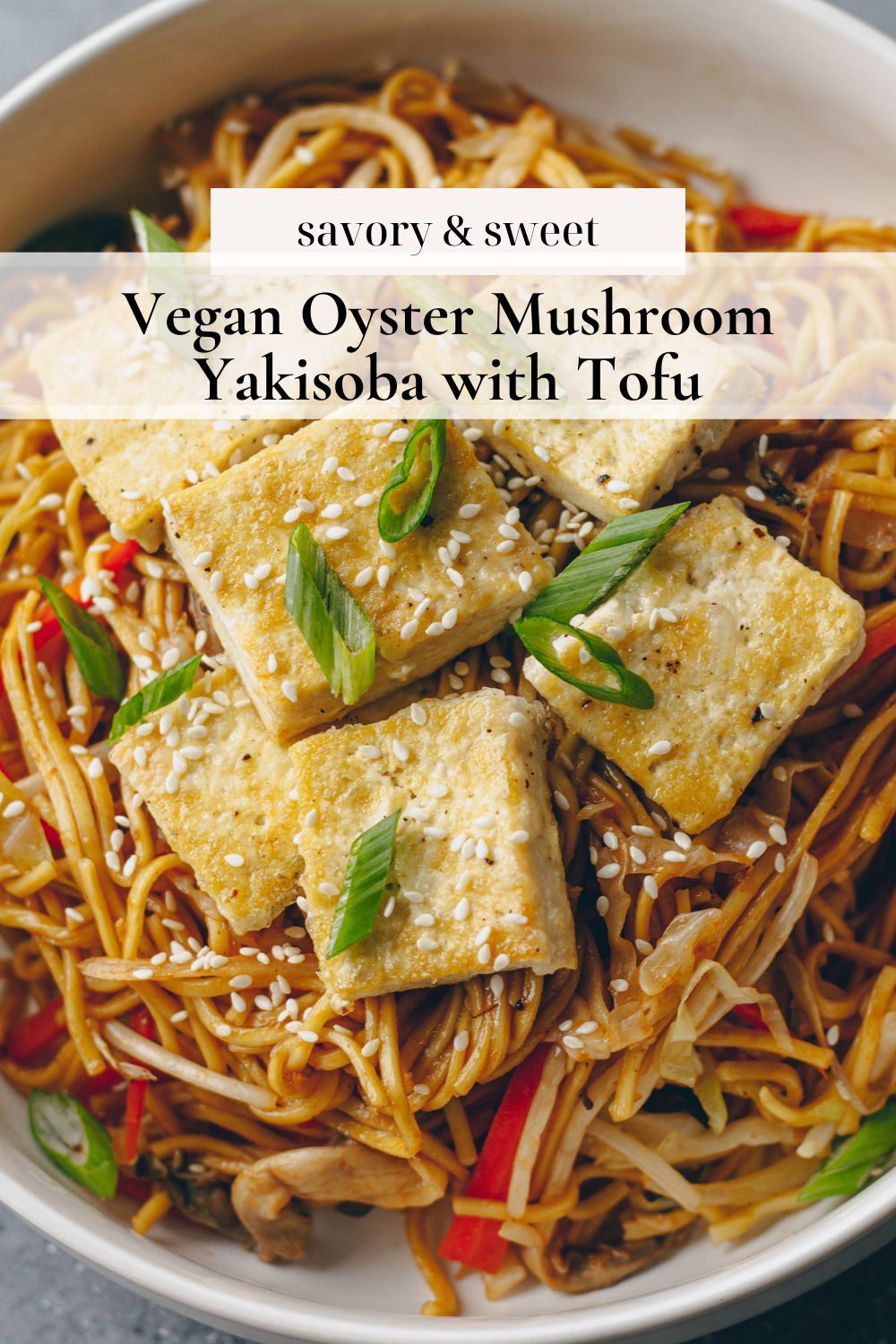This Oyster Mushroom Yakisoba with Tofu combines stir-fried yakisoba noodles with fresh veggies, a delicious savory sauce, and crispy tofu.