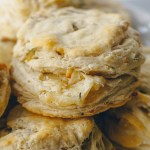 They are light, buttery, and flaky with pockets of creamy gruyere cheese and scattered with caramelized shallots and fresh rosemary.