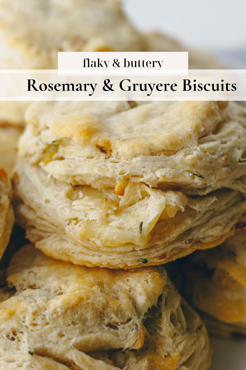 Flaky & buttery biscuits filled with layers of gruyere and fresh rosemary.