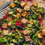 This one pan meal consists of crispy baked tofu, roasted broccoli and bell peppers, all tossed in a flavorful sweet and salty teriyaki sauce.