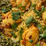 Flavor-packed turmeric chicken thighs, sautéed aromatics, and coconut rice all made in one skillet.