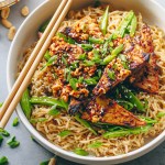 - Serve noodles topped with crispy peanut tempeh, snap peas, sliced green onion, and sprinkle of sesame seeds.