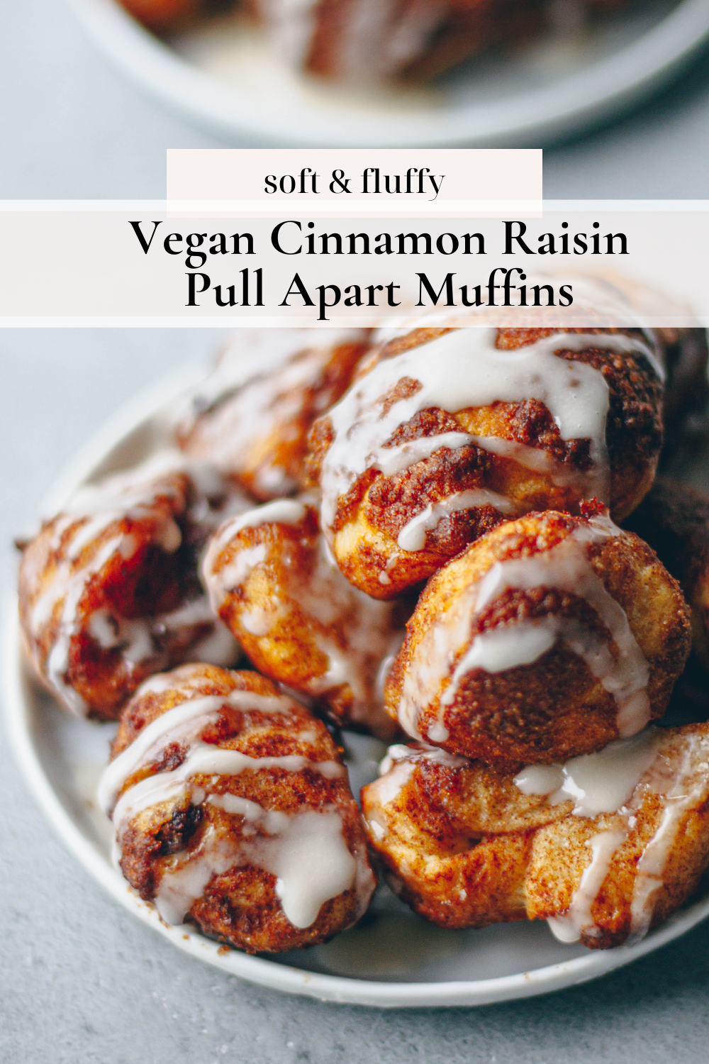 These Vegan Pull Apart Muffins are filled with cinnamon sugar and raisins and topped with a creamy vanilla icing.