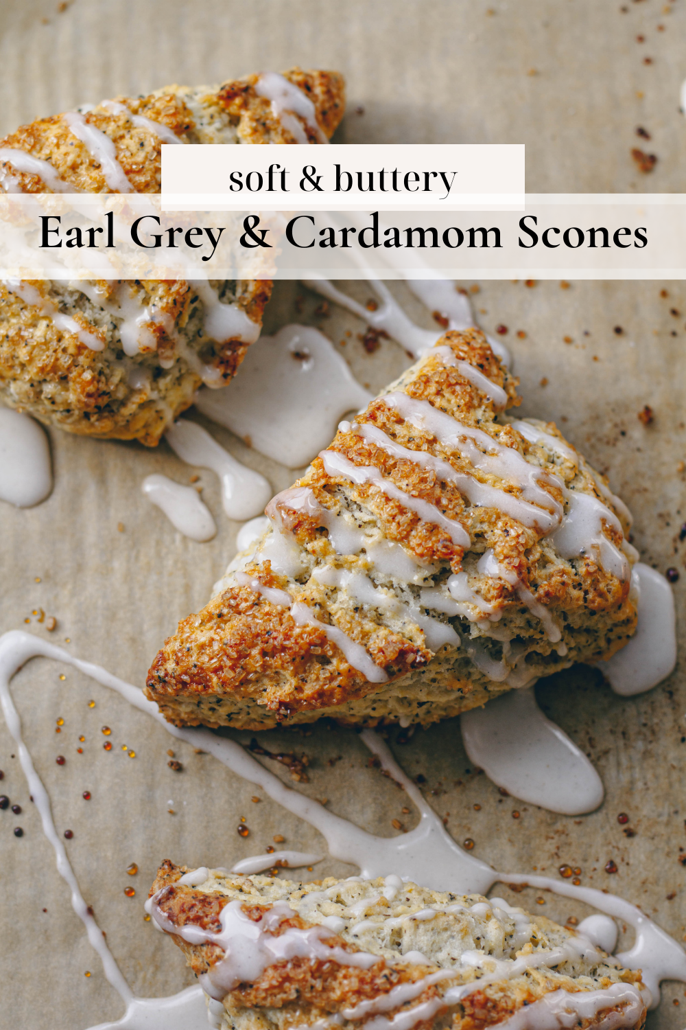 Perfectly soft, fluffy, & buttery scones with flavors of earl grey, lemon, and cardamom.